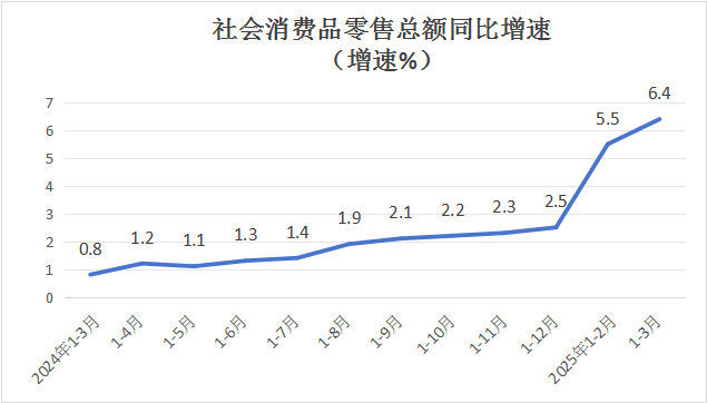 1-3月份,科右中旗社会消费品零售总额3.44亿元,同比增长6.4%,增速排名全盟第6位(全盟增速7.0%)。