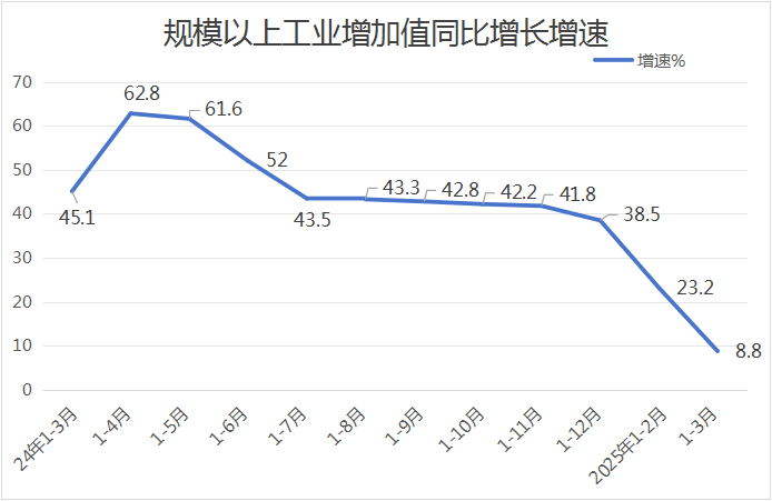 1-3月份,科右中旗规模以上工业增加值同比增长8.8%,增速排名全盟第4位(全盟增速8.3%)。