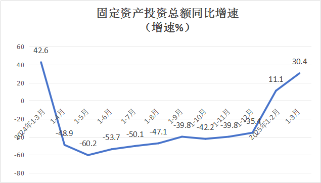 1-3月份,科右中旗固定资产投资完成额排名全盟第1位,同比增长30.4%,增速排名全盟第2位(全盟增速21.8%)。
