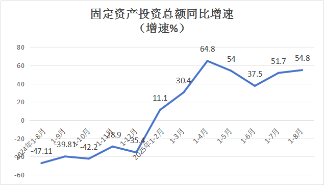 1-8月份,科右中旗固定资产投资完成额排名全盟第1位,同比增长54.8%,增速排名全盟第1位(全盟增速9.8%)。