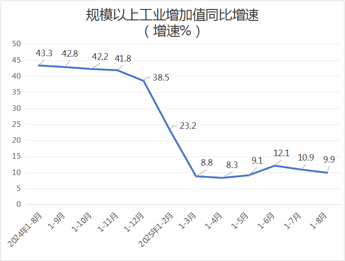 1-8月份,科右中旗规模以上工业增加值同比增长9.9%,增速全盟同科右前旗并列排名第3位(全盟增速6.7%)。