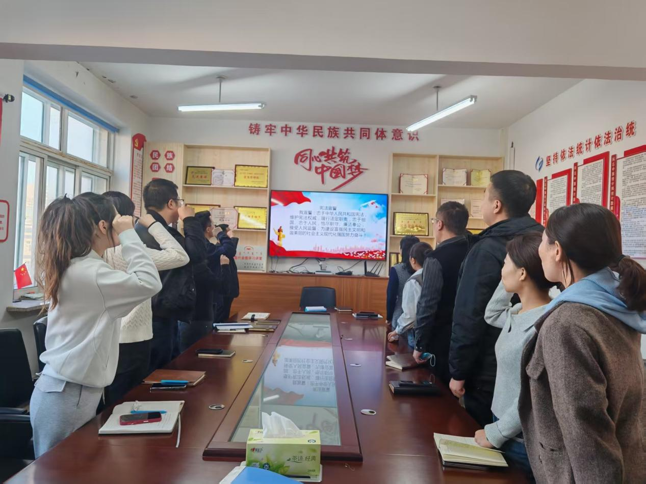为全面贯彻落实习近平法治思想以及习近平总书记对全面依法治国工作的重要指示精神,维护宪法权威,推动宪法全面实施,响应《2025年全国“宪法宣传周”工作方案》要求,12月4日上午,科右中旗统计局全体干部职工在统计局视频会议室开展“宪法宣誓”活动。