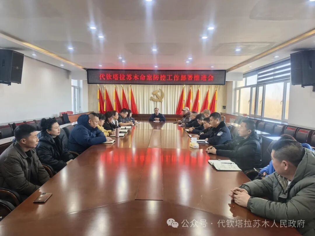 1月19日代钦塔拉苏木召开矛盾纠纷排查和命案防控工作推进会,全面部署专项攻坚行动,全力将矛盾化解在基层、化解在萌芽状态。1月19日各嘎查召开命案防控会议,按上级要求开展各项工作。1月22日,代钦塔拉苏木组织召开命案防控工作部署推进会,全面分析当前苏木命案防控工作面临的形势与风险隐患,对下一阶段重点任务进行再安排、再部署、再强化。