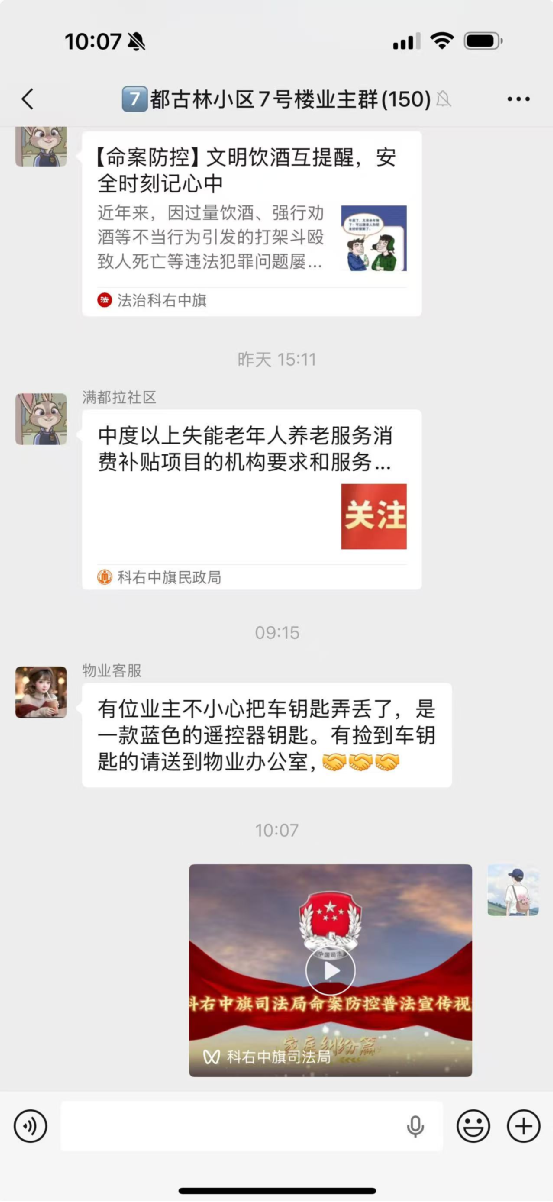 针对司法所单打独斗、资源分散的短板,旗司法局着力构建内外贯通的协同体系。对外强化联动:主动融入基层治理大局,深化“四所一庭”联动机制,针对婚姻家庭、劳资争议等7类高发领域、21类重点人群开展“拉网式”排查610起,并通过“人民调解护稳定”专项行动成功化解纠纷1390件,调解率达99.8%;针对命案防控工作,在持续做好矛盾纠纷排查和特殊人群管控的基础上,精心制作了3—5分钟普法微视频、图文并茂的案例手册等通俗易懂的宣传材料,通过各嘎查微信群进行推送传播,以群众喜闻乐见的方式提升普法效果,进一步筑牢命案防控的基层防线。