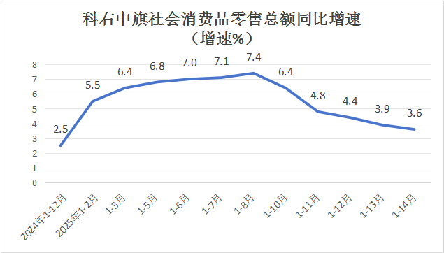 1-12月份,科右中旗社会消费品零售总额10.98亿元,同比增长3.6%,增速排名全盟第6位(全盟增速4.7%)。