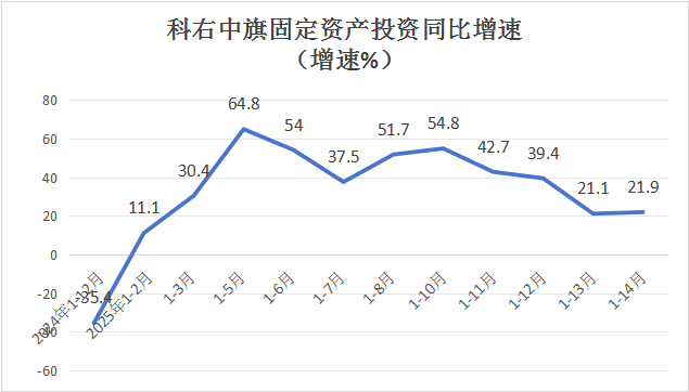 1-12月份,科右中旗固定资产投资完成额排名全盟第1位,同比增长21.9%,增速排名全盟第1位(全盟增速2.5%)。