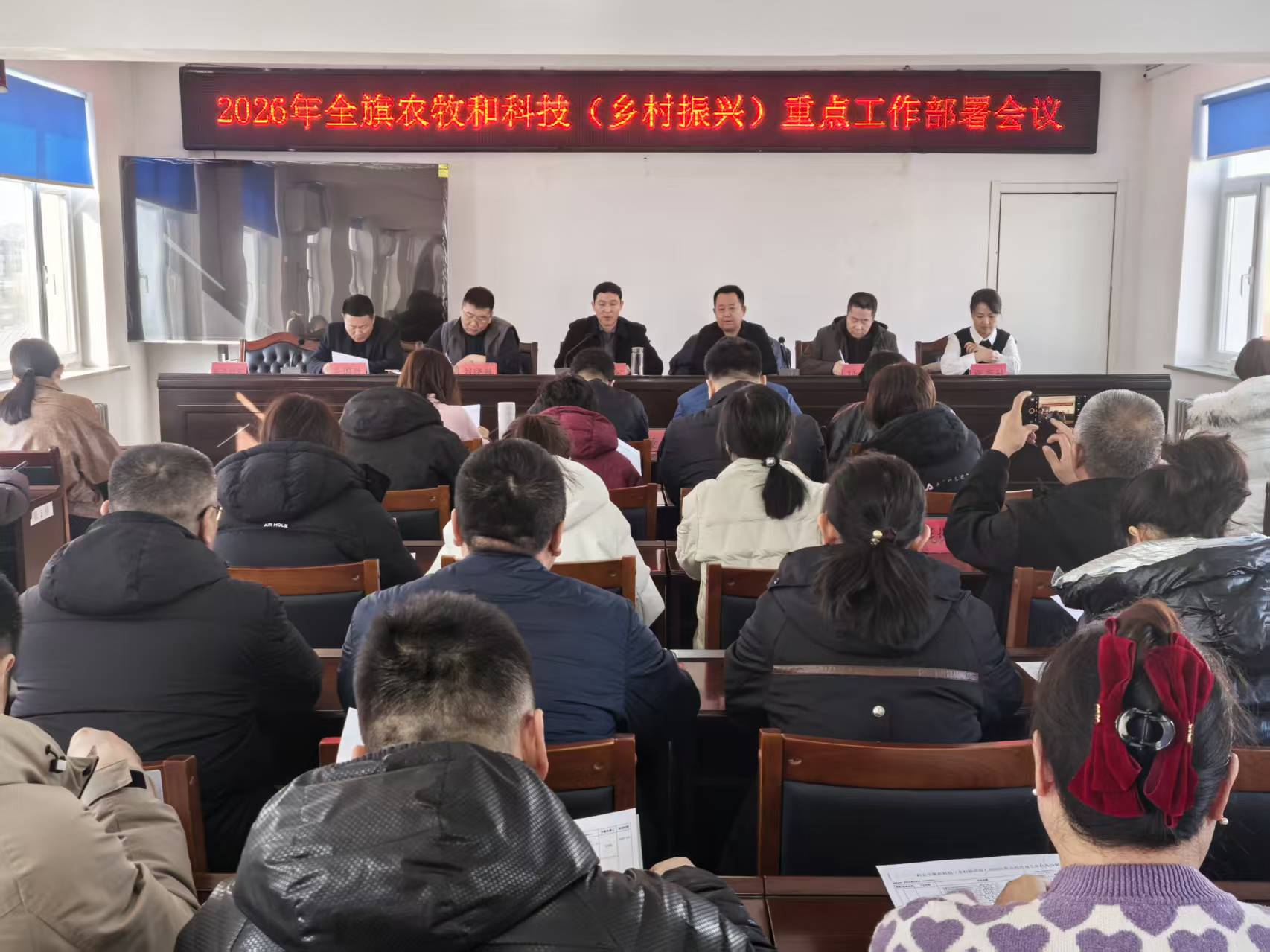为明确2026年度农牧和科技(乡村振兴)领域工作任务,压实责任,着力推动全旗农牧业高质量发展,3月4日上午,旗农科局召开2026年全旗农牧和科技(乡村振兴)重点工作部署会议。会议由旗农科局局长王保军主持,各苏木镇分管农牧、乡村振兴业务副职,旗农科局各分管业务副局长、各站所长、股长参加会议。