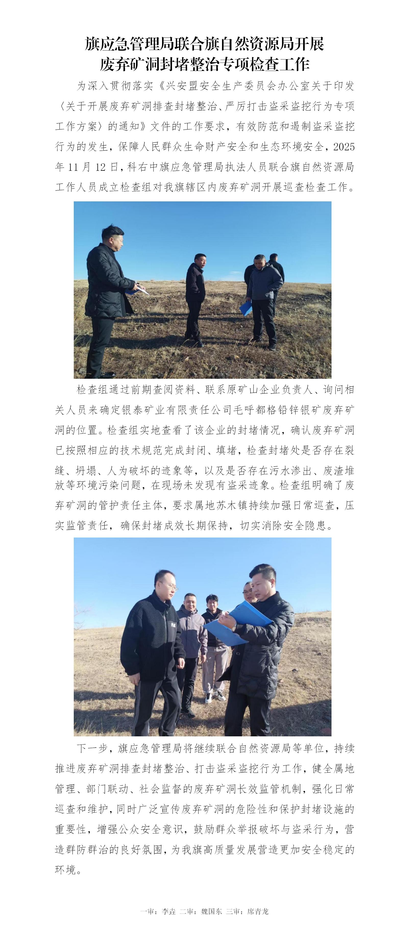 旗应急管理局联合旗自然资源局开展废弃矿洞封堵整治专项检查工作