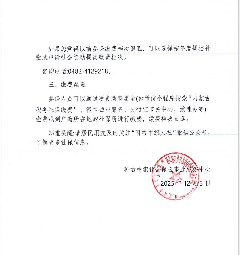 关于2025年度城乡居民养老保险参保缴费事宜的公告