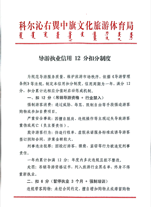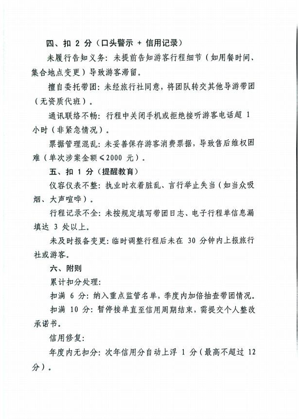 导游执业信用12分扣分制度