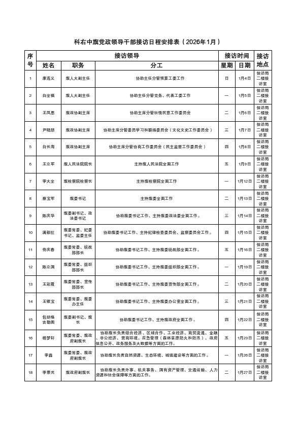 科右中旗党政领导干部接下访日程安排表(2026年1月)