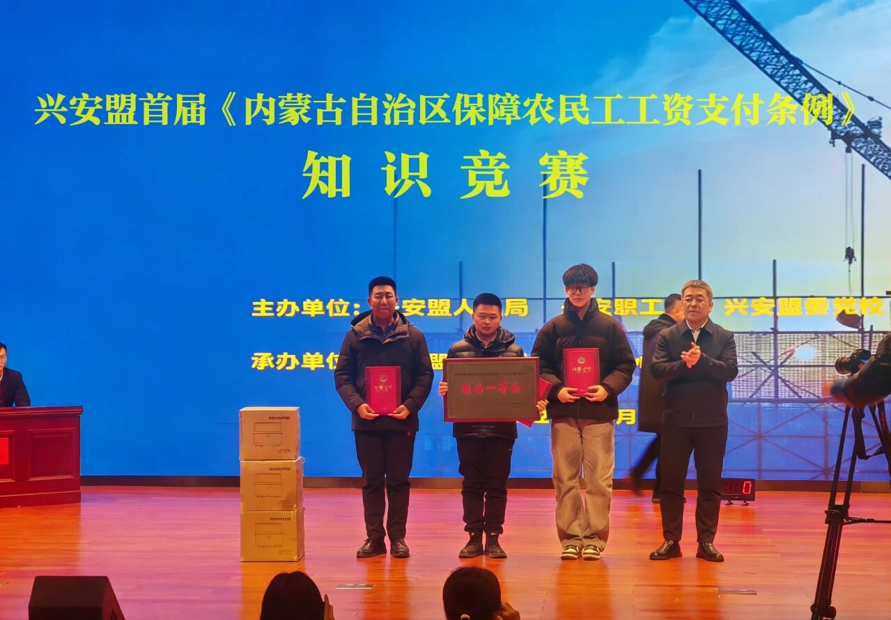 12月26日,兴安盟首届《内蒙古自治区保障农民工工资支付条例》知识竞赛圆满落幕,由我旗交通局、住建局联合组建的代表队,凭借扎实的政策功底和出色的临场表现脱颖而出,斩获第一名的优异成绩。