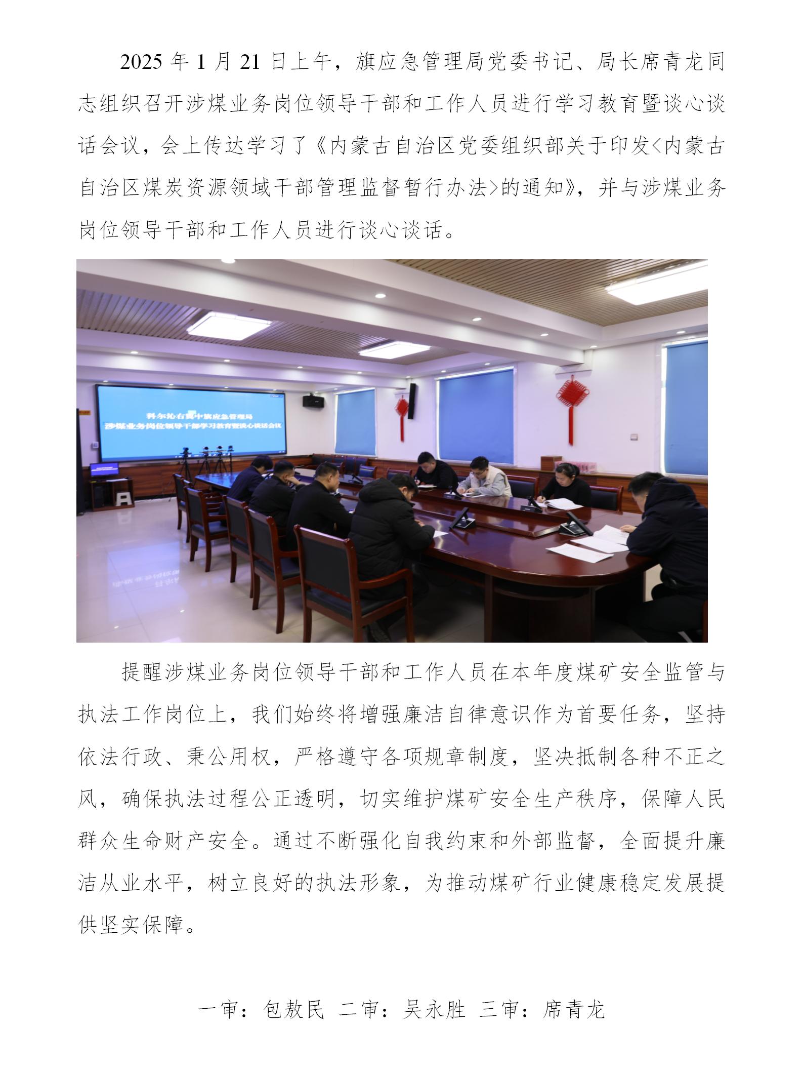 科右中旗应急管理局召开涉煤业务岗位领导干部学习教育暨谈心谈话会议