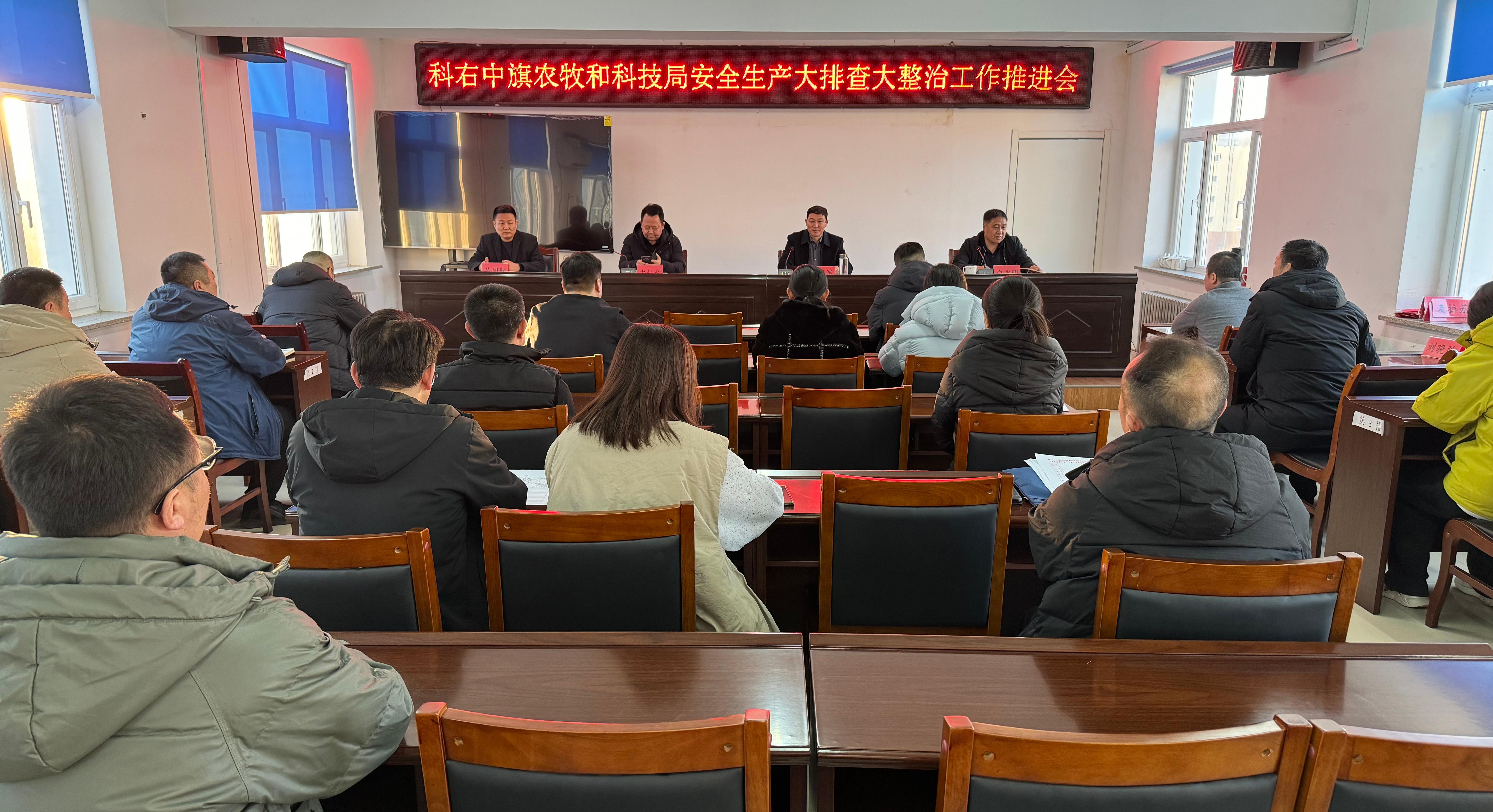 2月5日,科右中旗农牧和科技局组织召开全旗农牧领域安全生产工作推进会,对当前全旗农牧领域安全生产工作进行再动员再部署,局领导班子、各股室及三级单位主要负责人参加会议,会议由党组书记、局长王保军同志主持。