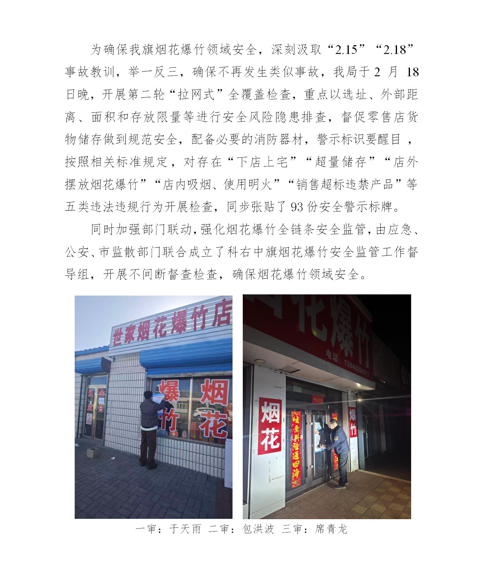 深刻吸取事故教训 连夜开展烟花爆竹安全 检查并张贴警示标识