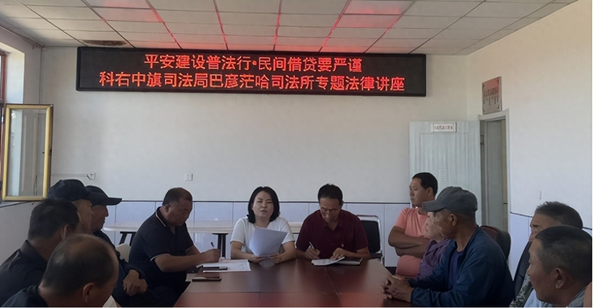 8月24日,兴安盟科右中旗司法局巴彦茫哈司法所青年干警澈布尔在嘎查大会议室为当地农牧民开展“平安建设普法行•民间借贷要严谨”主题法律讲座,以“民间借贷之“完美”的借条”为题,同大家一起探讨了关于民间借贷中借条的若干问题,旨在增长民族地区老乡们维护自身权益的相关法律识。