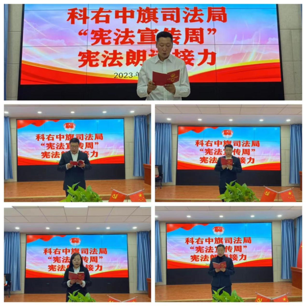 为深入学习宣传贯彻习近平法治思想,习近平文化思想,弘扬宪法精神,维护宪法权威,2023年12月4日,科右中旗司法局以第十个“国家宪法日”、第六个“宪法宣传周”为契机,组织局机关全体干部开展“大力弘扬宪法精神 建设社会主义法治文化”为主题的宪法宣誓、宪法朗读接力活动。