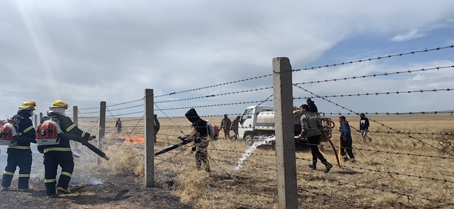 4月17日9时30分,呼伦贝尔市新巴尔虎右旗阿日哈沙特镇阿敦础鲁嘎查开展日常防火巡护时,发现烟雾弥漫,且随风飘来草木烧焦味,初步判断境外火可能抵边,迅速赶赴中蒙1494界桩附近观察火势。新巴尔虎右旗森防指接报后,立即启动应急预案,第一时间向蒙方通报火情信息。2个多小时后,中蒙双方将总长约5公里的火线成功堵截在我方边境线以外,成功守护了无人区集体草场75805亩,避免经济损失1000余万元,未造成人员伤亡。