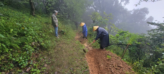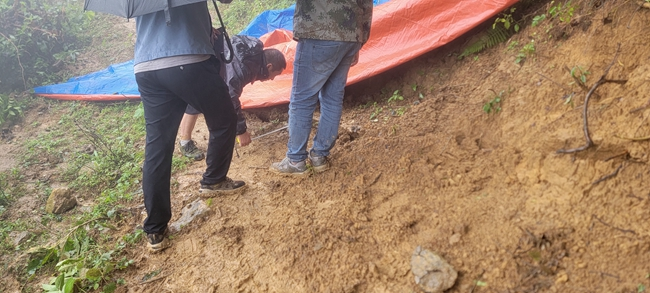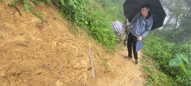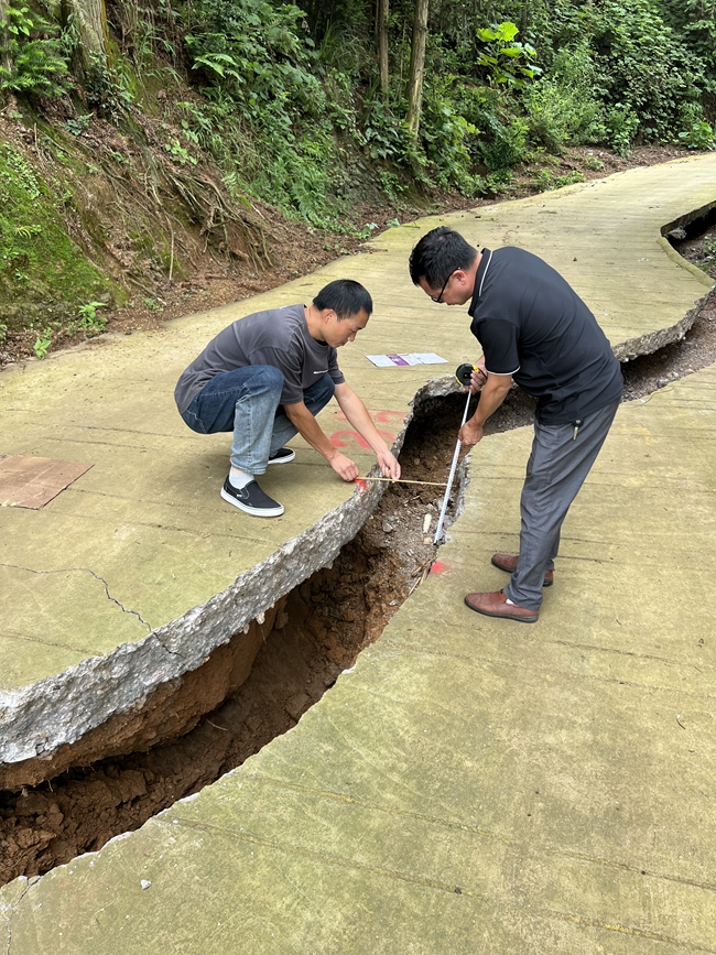 乡村干部对地质灾害点进行检查评估