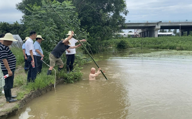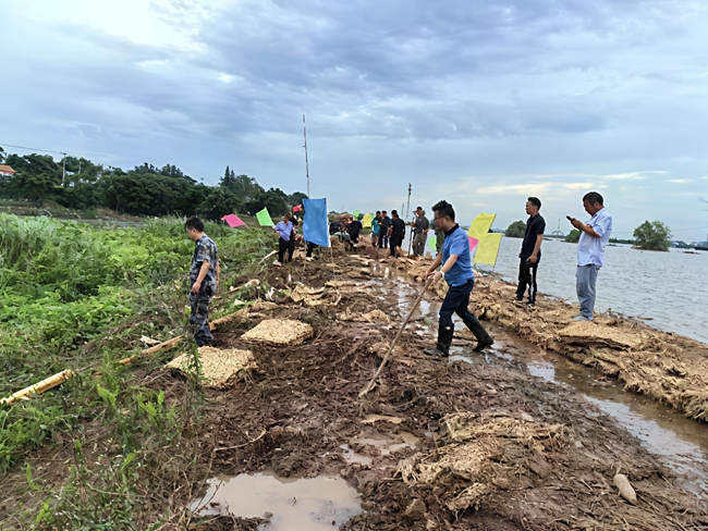 7月4日11时30分,湖北黄冈黄州区陶店乡杨家湾村灾害风险隐患信息报送员在辖区堤段巡查发现,附近一水塘内有水泡涌出,于是逐级上报至区应急管理局和区政府。区政府立刻派出专家组到现场查看辨认,经人工潜水探摸,发现塘底有沙窝,水温低,判定为管涌群险情。乡镇应急救援队伍立即采取填塘压渗铺盖措施,对险情范围内1330平方米、深4米的水塘进行黄沙填筑,共投入150人、18台机械,耗用黄沙5000立方米。5日凌晨,险情全部得到有效控制,成功避免了溃堤,避免了沿线24万人、32万亩耕地被淹,避免了G106国道、G347国道、京九铁路、武黄高铁等重要基础设施损坏。