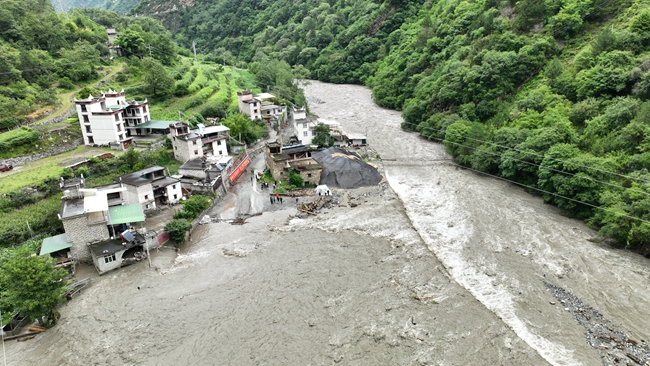 四川丹巴县东谷镇纳交村泥石流灾害现场