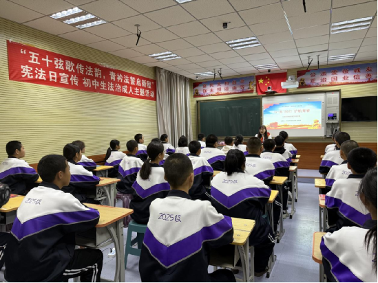 12月3日下午,旗司法局普法小分队深入巴彦呼舒第二中学,举办了一场以“与宪同行 护航青春”为主题的法治讲座。为扩大覆盖面、提升影响力,本次活动创新采用“线下讲授+线上直播”相结合的模式,覆盖现场七年级一个班级50余名师生,同时七年级组其他11个班级500余人线上同步观看学习,实现了普法宣传的倍增效应。讲座内容贴近青少年学习生活实际,通过生动的案例讲解宪法、未成年人保护、预防犯罪等法律知识。活动特别设置了趣味问答互动环节,极大激发了同学们的参与热情,并为积极答题的同学发放了文具盒、手套、手提袋等学习生活用品作为奖励。活动现场还向师生们发放了《中华人民共和国宪法》读本、《中华人民共和国未成年人保护法》《中华人民共和国预防未成年人犯罪法》宣传手册以及未成年人法律援助服务指南等系列普法资料200余份。整场活动寓教于乐,形式活泼,有力引导青少年树立宪法权威意识、增强法治观念和自我保护能力。