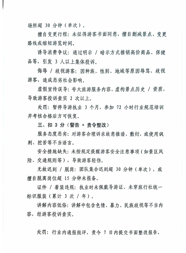 导游执业信用12分扣分制度
