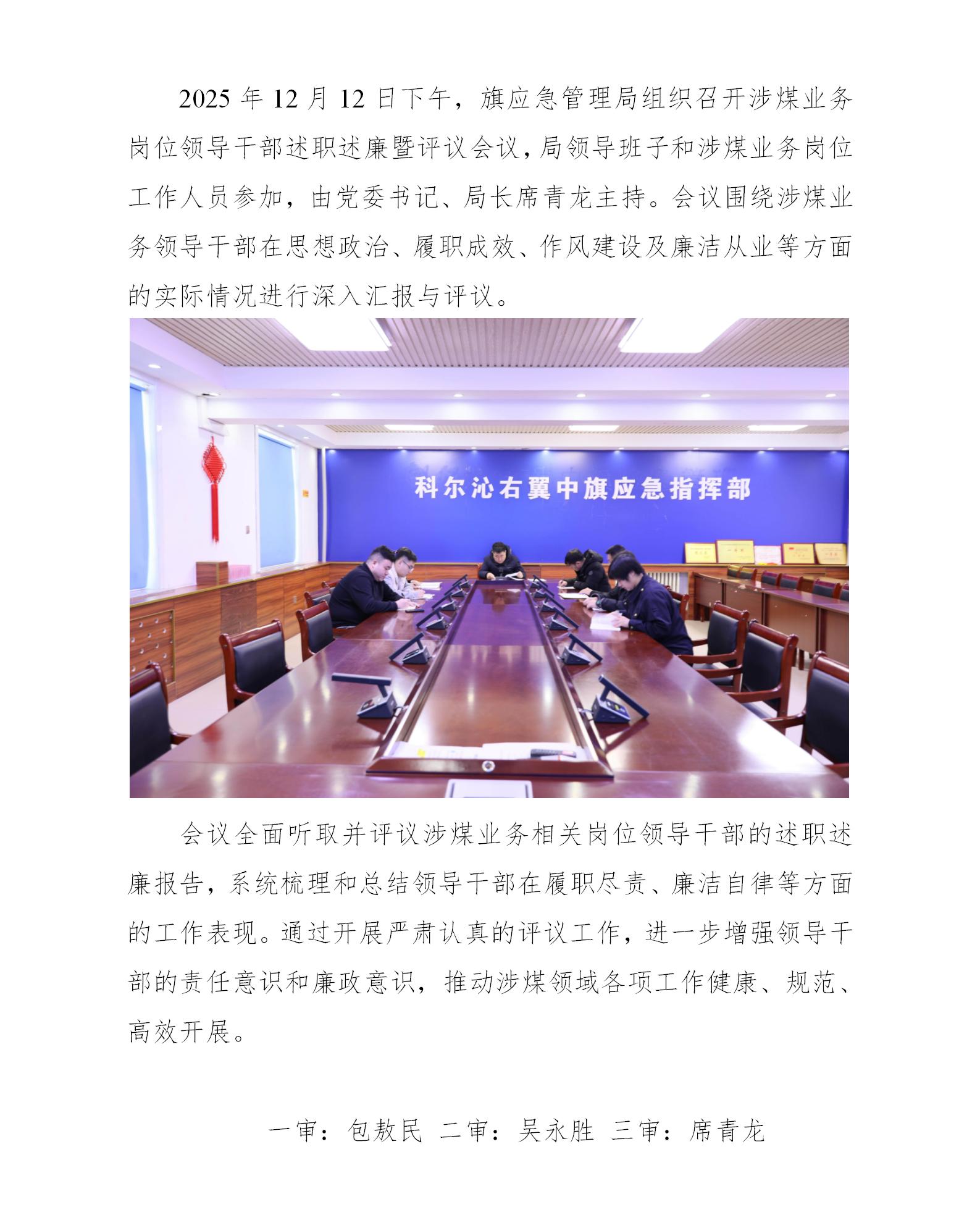 科右中旗应急管理局召开涉煤业务岗位领导干部述职述廉暨评议会议