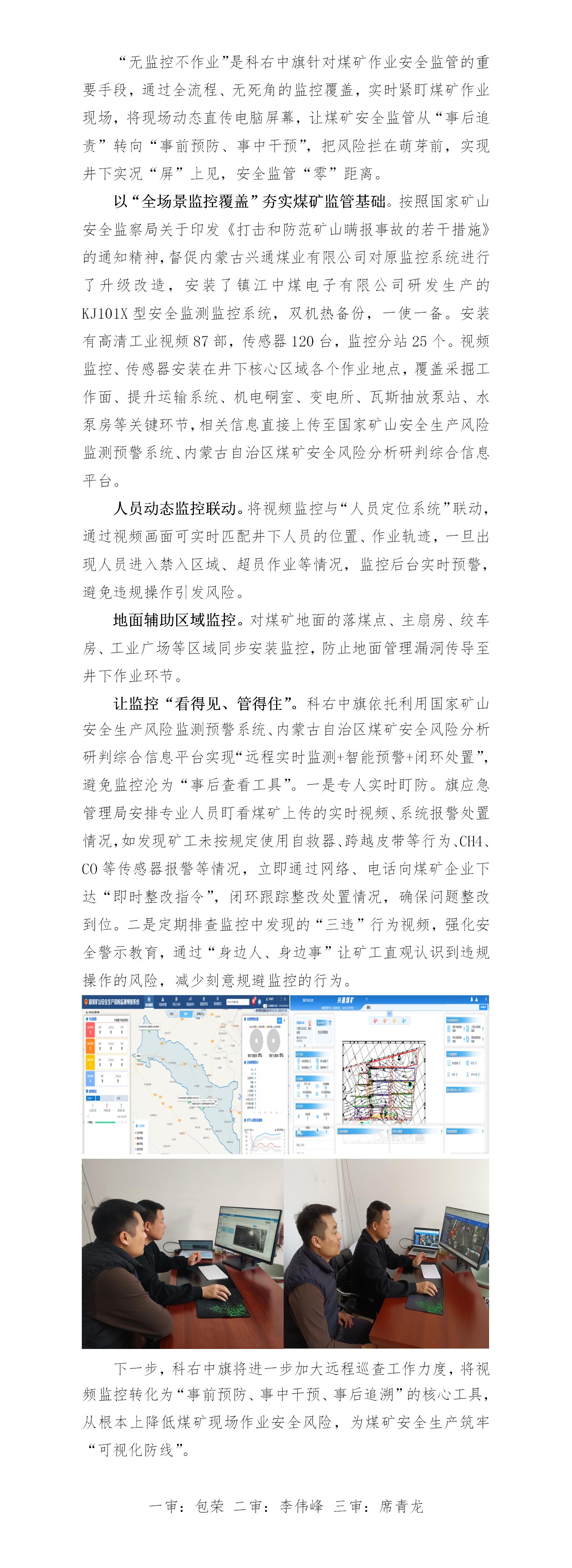 井下实况“屏”上见,安全监管“零”距离 科右中旗落实无监控不作业,筑牢煤矿安全生产“可视化防线”